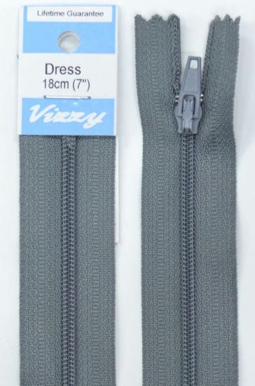 Vizzy Dress Zip, 18cm Colour 62 GREY, A Quality Brand Name Dress Zipper