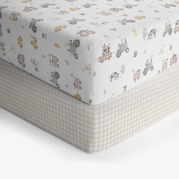 Tractor Ride - 2 Pack Organic Jersey Cot Fitted Sheets