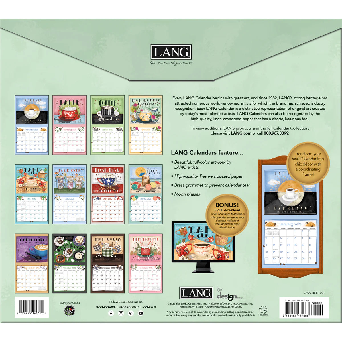 Start every day with your favorite brew in sight with the 2026 Coffee Deluxe Wall Calendar by LANG. This cozy and aromatic calendar is a tribute to coffee lovers everywhere, featuring charming caf scenes, rustic mugs, vintage signs, and steamy cups that warm the soul. Each month is steeped in rich tones and comforting details that celebrate the simple pleasure of a good cup of coffee.