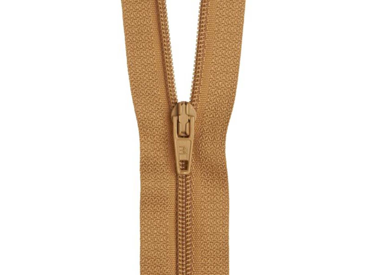 This Dress Zip- 20cm (8 inch)- 274 BROWN GOLD is a high quality nylon zip with a metal zip pull on a 100% polyester tape. This closed end zip is great for dresses, trousers as well as cushions & craft projects where the zipper will be visible if not covered.
