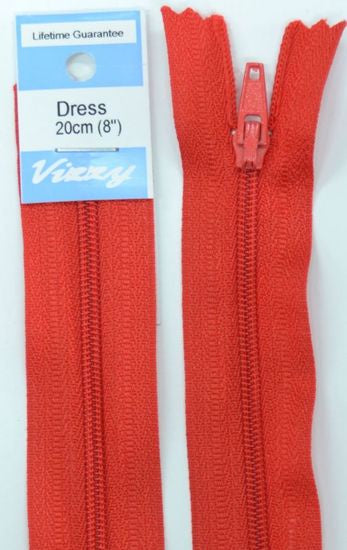 Vizzy Dress Zip, 20cm Colour 31 RED, A Quality Brand Name Dress Zipper