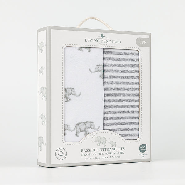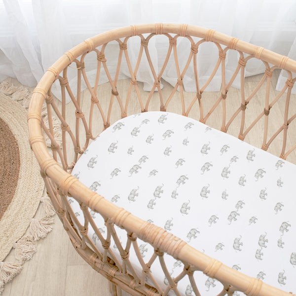 Jersey Bassinet Fitted Sheet - Watercolour Elephant