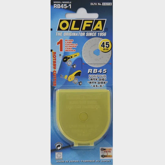 This OLFA rotary blade cuts up to six layers of fabric at a time, saving you precious time. Because the blade is made of tungsten tool steel, it retains its sharp edge, saving you money. The replacement blade fits any OLFA 45mm rotary cutter.
