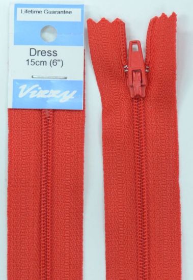 Vizzy Dress Zip, 15cm Colour 31 RED, A Quality Brand Name Dress Zipper
