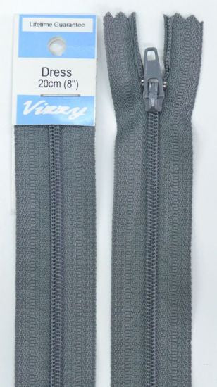 Vizzy Dress Zip, 20cm Colour 62 GREY, A Quality Brand Name Dress Zipper