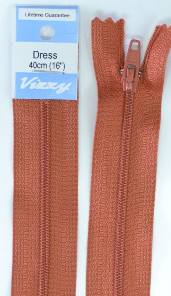Vizzy Dress Zip, 40cm Colour 15 BRICK, A Quality Brand Name Dress Zipper