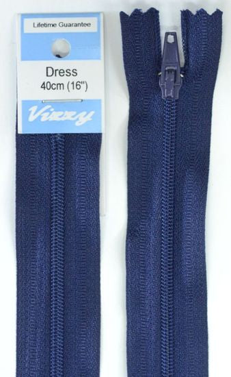 Vizzy Dress Zip, 40cm Colour 58 NAVY, A Quality Brand Name Dress Zipper