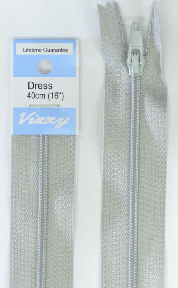 Vizzy Dress Zip, 40cm Colour 60 SILVER GREY, A Quality Brand Name Dress Zipper