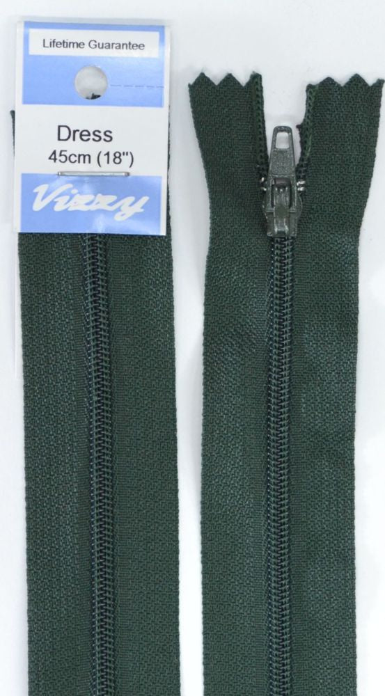Vizzy Dress Zip, 45cm Colour 46 HUNTER GREEN, A Quality Brand Name Dress Zipper