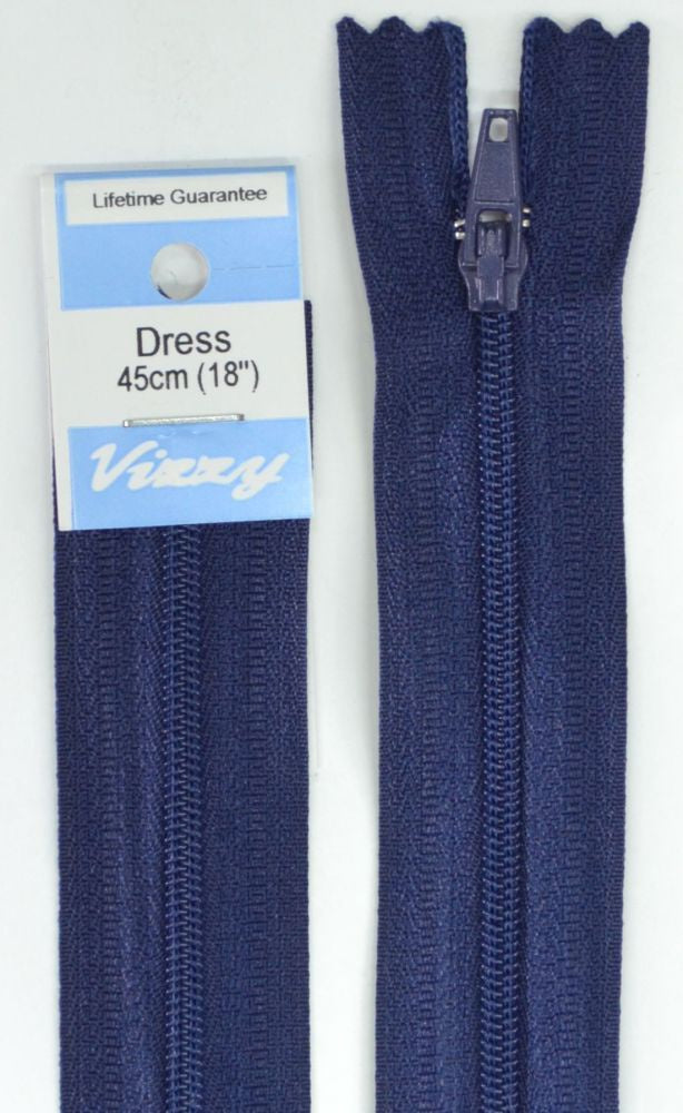 Vizzy Dress Zip, 45cm Colour 58 NAVY, A Quality Brand Name Dress Zipper