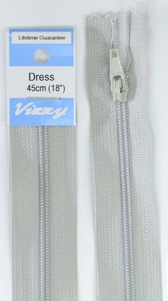 Vizzy Dress Zip, 45cm Colour 60 SILVER GREY, A Quality Brand Name Dress Zipper