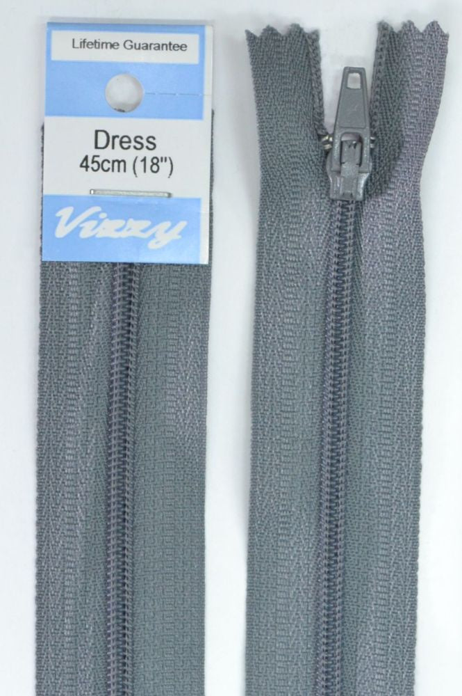 Vizzy Dress Zip, 45cm Colour 62 GREY, A Quality Brand Name Dress Zipper