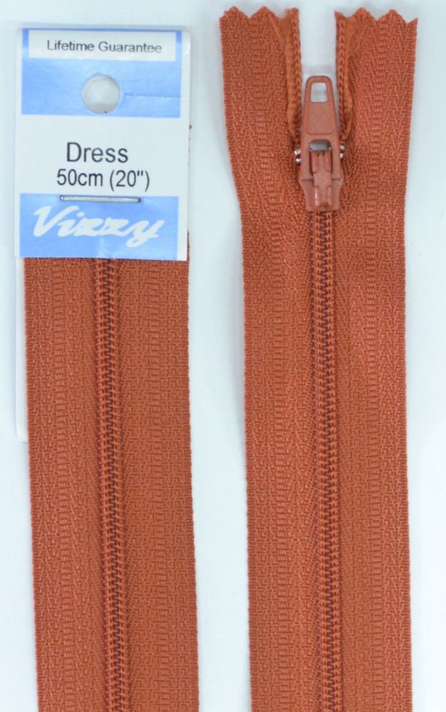 Vizzy Dress Zip, 50cm Colour 15 BRICK, A Quality Brand Name Dress Zipper