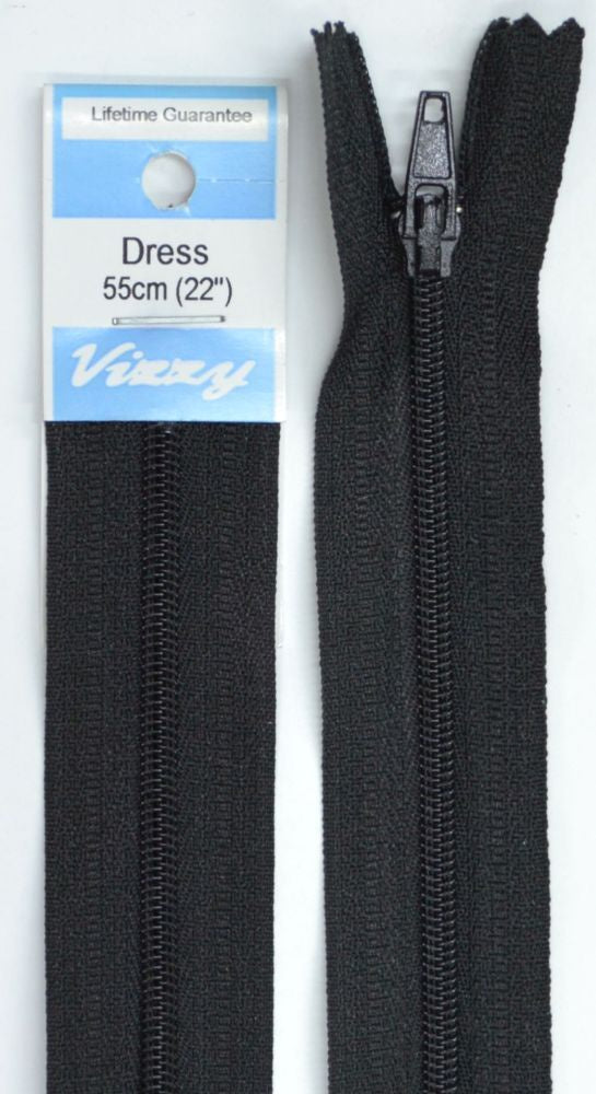 Vizzy Dress Zip, 55cm Colour 02 BLACK, A Quality Brand Name Dress Zipper