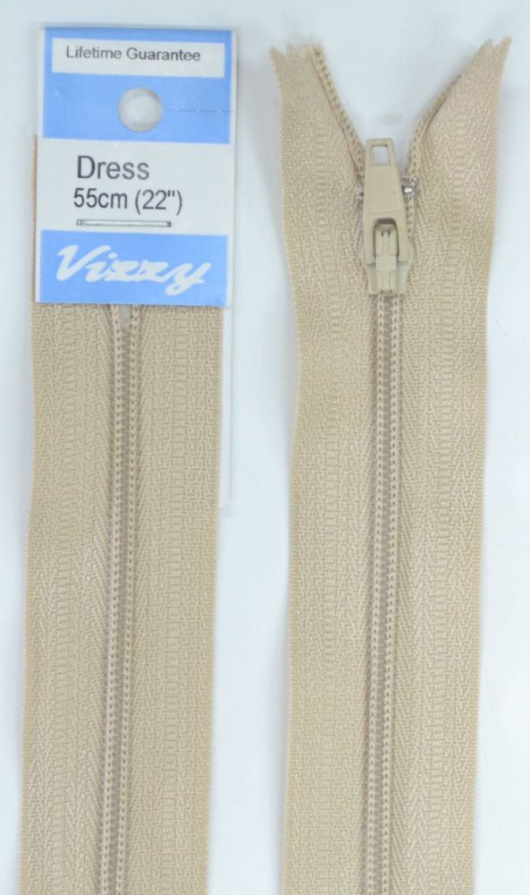 Vizzy Dress Zip, 55cm Colour 07 NATURAL, A Quality Brand Name Dress Zipper