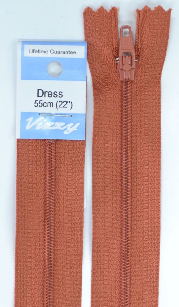 Vizzy Dress Zip, 55cm Colour 15 BRICK, A Quality Brand Name Dress Zipper