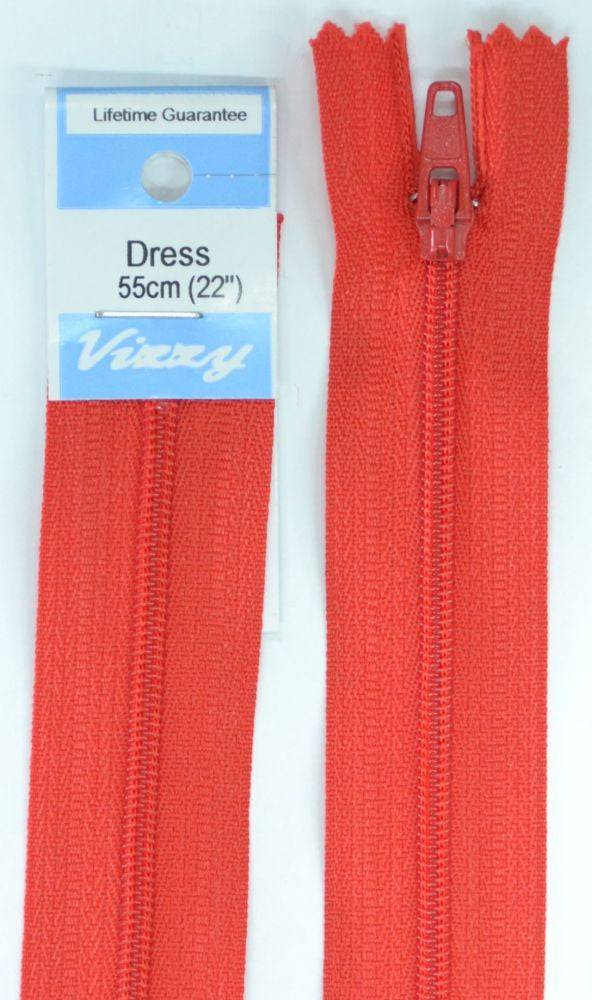 Vizzy Dress Zip, 55cm Colour 31 RED, A Quality Brand Name Dress Zipper