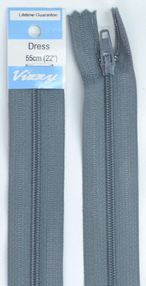 Vizzy Dress Zip, 55cm Colour 62 GREY, A Quality Brand Name Dress Zipper