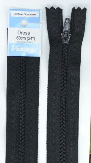 Vizzy Dress Zip, 60cm Colour 02 BLACK, A Quality Brand Name Dress Zipper