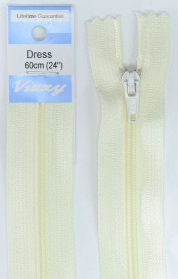 Vizzy Dress Zip, 60cm Colour 05 CREAM, A Quality Brand Name Dress Zipper
