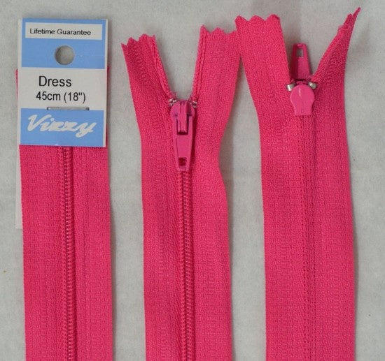 Vizzy Dress Zip, 45cm Colour 94 HOT PINK, A Quality Brand Name Dress Zipper -