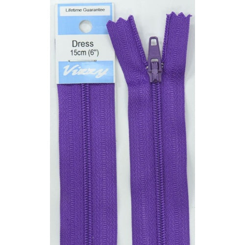 Vizzy Dress Zip, 15cm Colour 109 PURPLE, A Quality Brand Name Dress Zipper