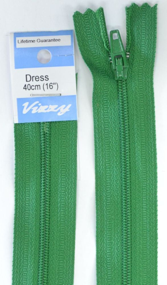 Vizzy Dress Zip, 40cm Colour 110 EMERALD, A Quality Brand Name Dress Zipper