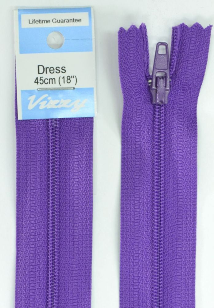 Vizzy Dress Zip, 45cm Colour 109 PURPLE, A Quality Brand Name Dress Zipper