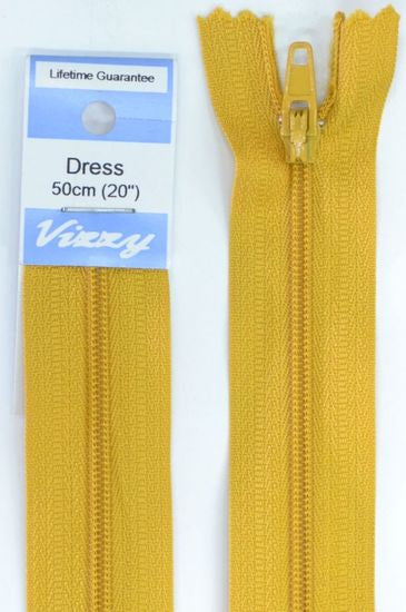 Vizzy Dress Zip, 50cm Colour 113 OLD GOLD, A Quality Brand Name Dress Zipper