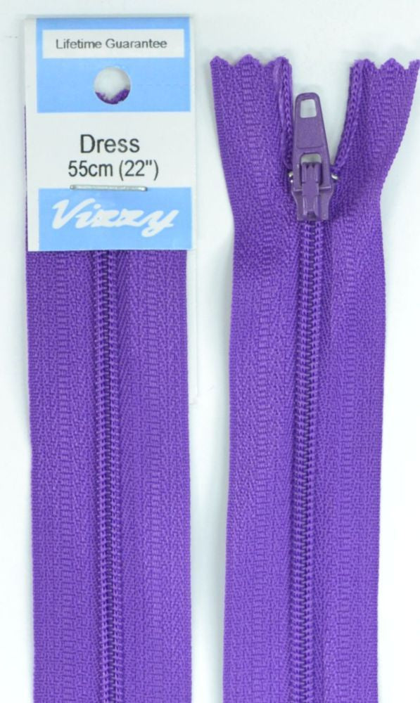 Vizzy Dress Zip, 55cm Colour 109 PURPLE, A Quality Brand Name Dress Zipper
