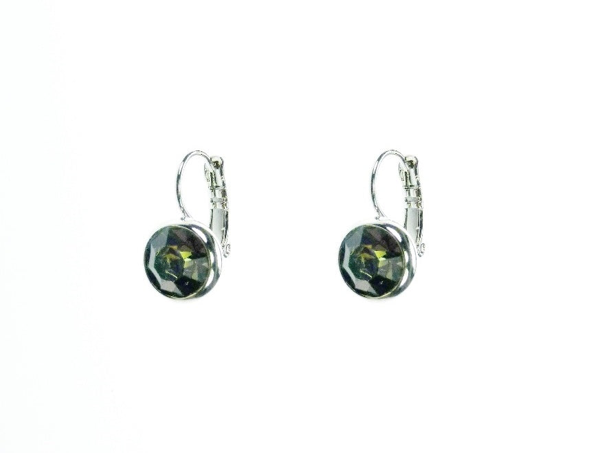 Metal set swarovski stone in medium size pierced french clip earrings in Rhodium/Black Diamond