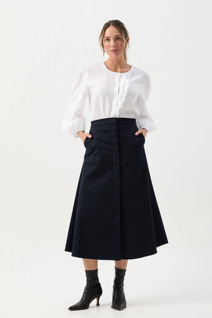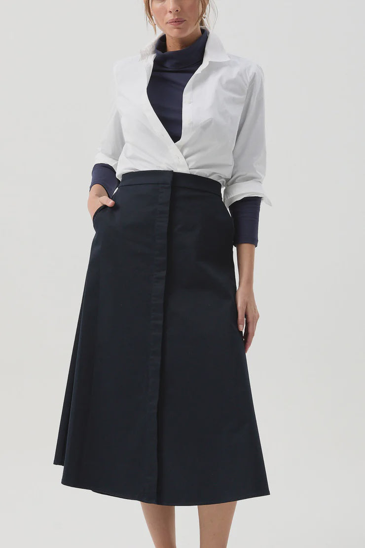A-Line Button Through Skirt Navy