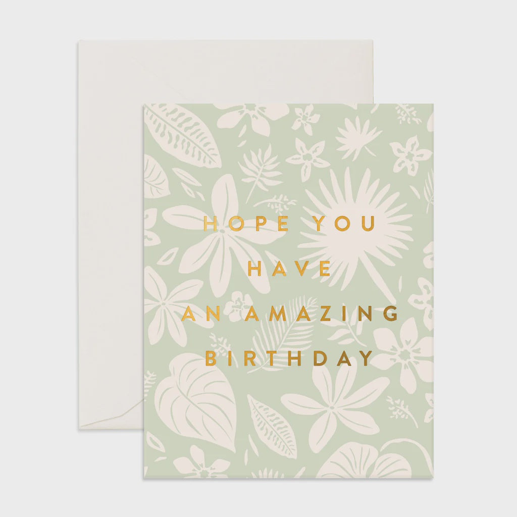 Format: 108 x 140mm / 4.25 x 5.5 inches. Material: Warm White Uncoated Card Stock. Process. Full-color + Foil Stamp. Features: Blank Interior. Foil: Gold Metallic Foil. Envelope: Cream. Origin: Made in Australia.