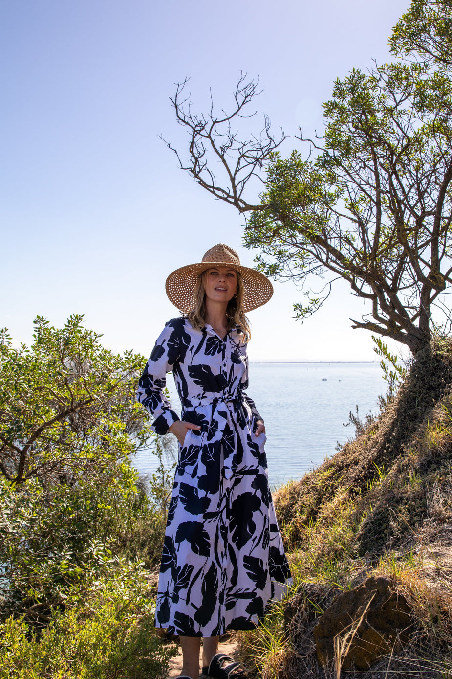 Our signature A-line belted dress returns in a fresh Block Leaf print, crafted from 100% breathable cotton for all-day comfort. Inspired by the leaves of the land, it’s a versatile style you can wear cinched at the waist with the self-fabric belt or your own belt styling.
