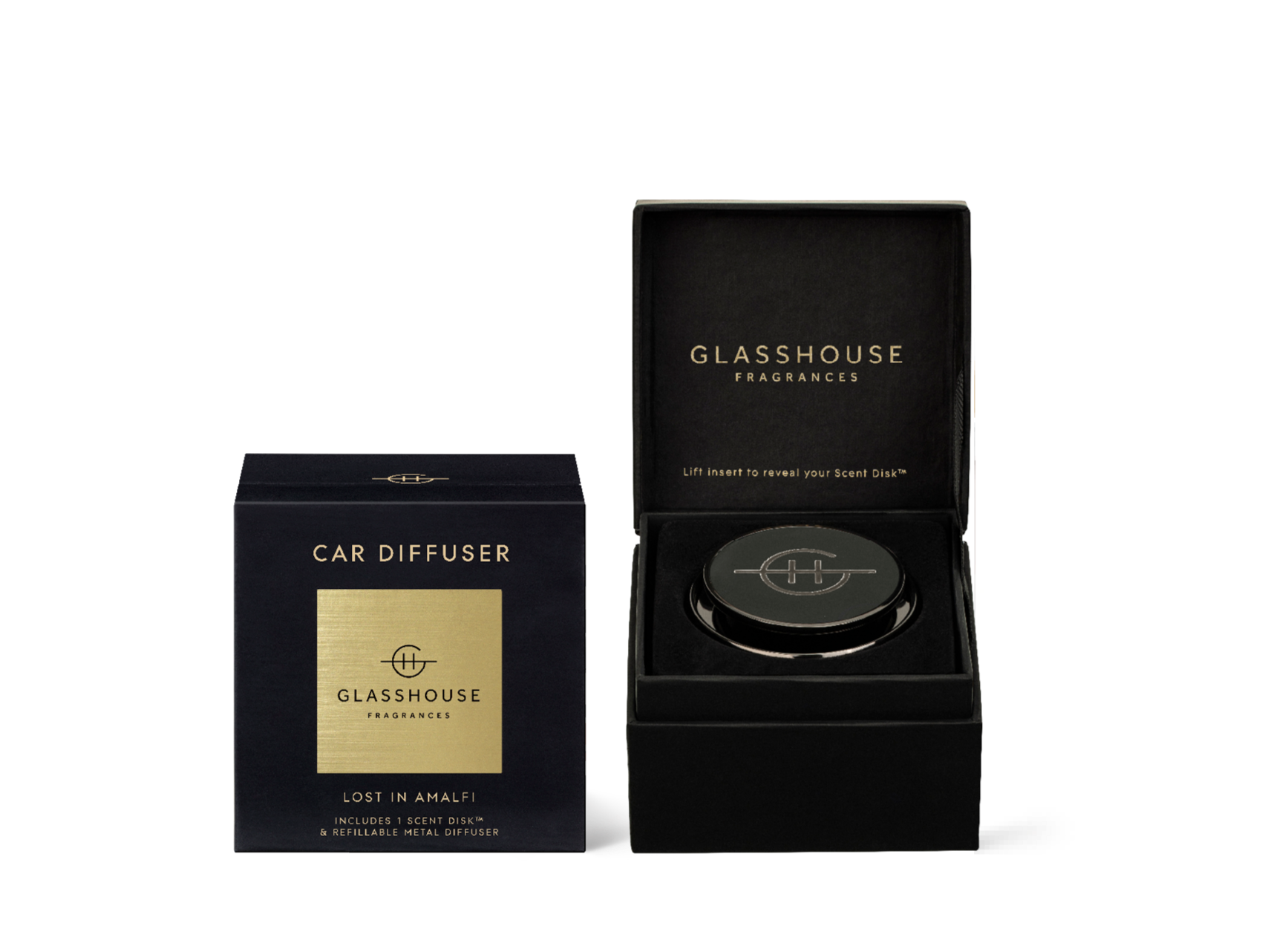 Contains: 1 x Lost in Amalfi Scent Disk™ and 1 x Refillable Black/Black Metal Diffuser.