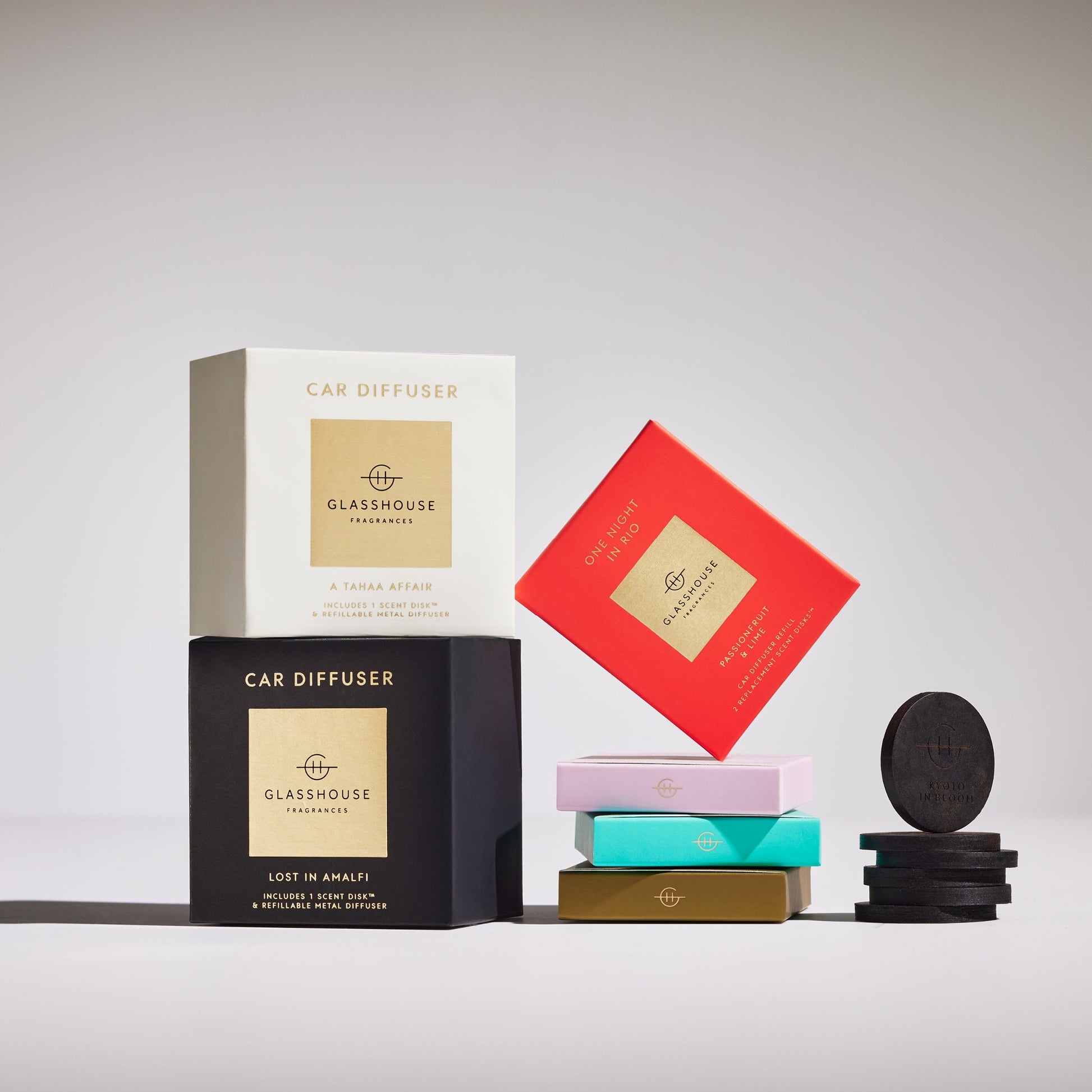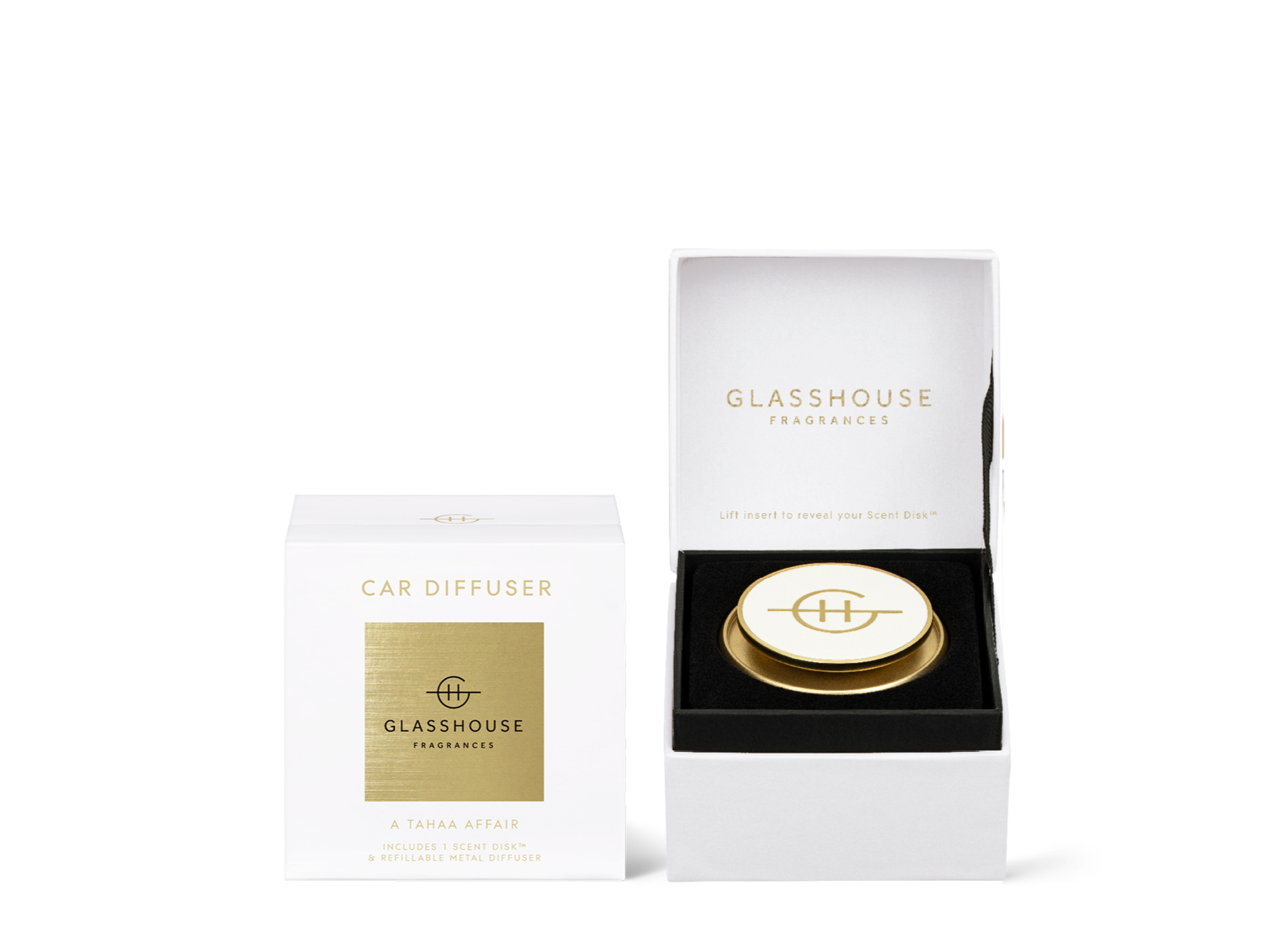 Contains: 1 x A Tahaa Affair Scent Disk™ and 1 x Refillable White/Gold Metal Diffuser