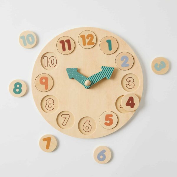 Youngsters will have a blast learning how to tell time in a fun and engaging way. This colourful wooden number set will help kids improve their hand-eye coordination, numeracy and logical abilities, as well as their learning and memory skills. This Clock Puzzle comes in its own pouch bag and is sure to provide hours of puzzle play. An ideal gift for kids of all ages and suitable for home or classroom teaching.
