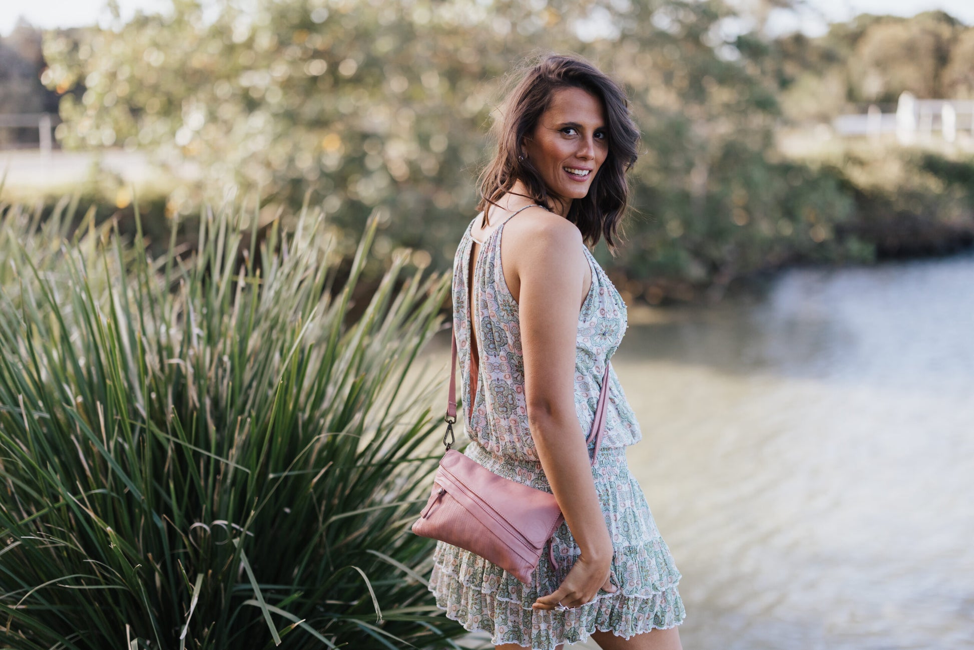 - Removable adjustable crossbody strap and wristlet