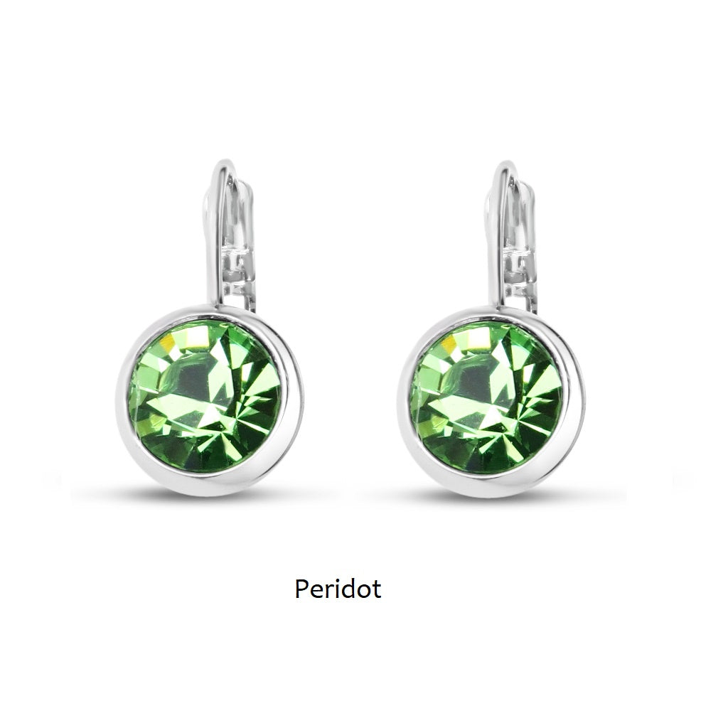 Swarovski SS39 8mm crystal with cup setting on French Clip in Peridot/Rhodium plated.