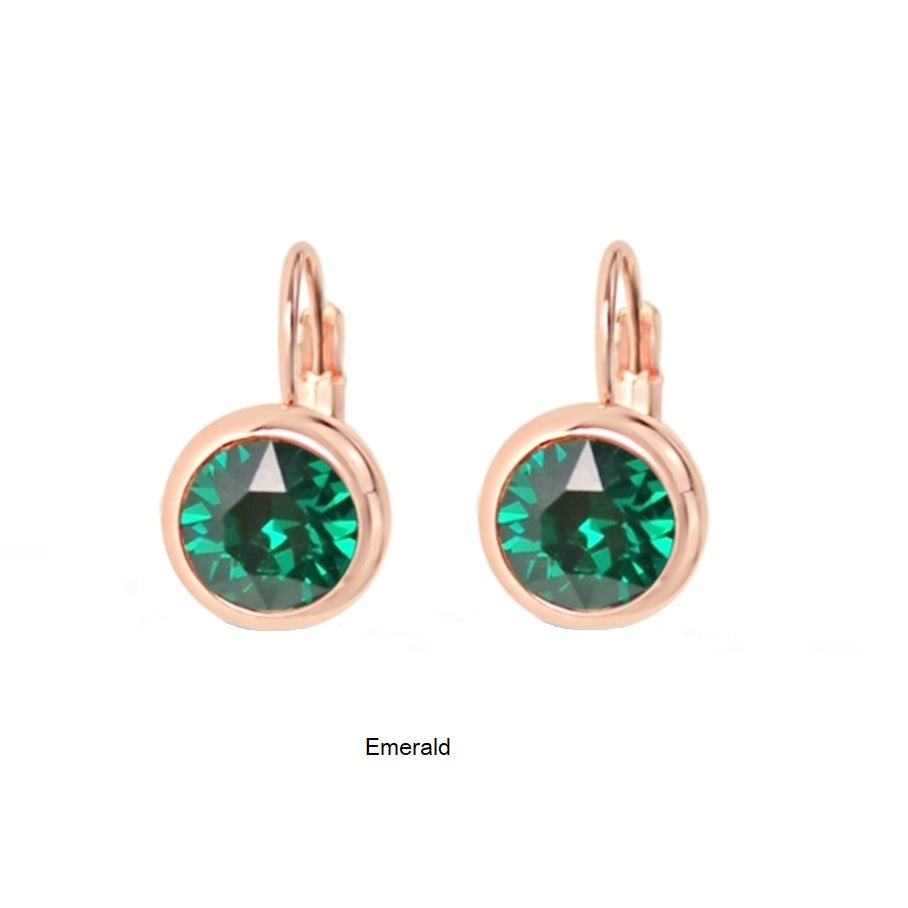 Swarovski SS39 8mm crystal pierced on french clip in Emerald/Rose Gold
