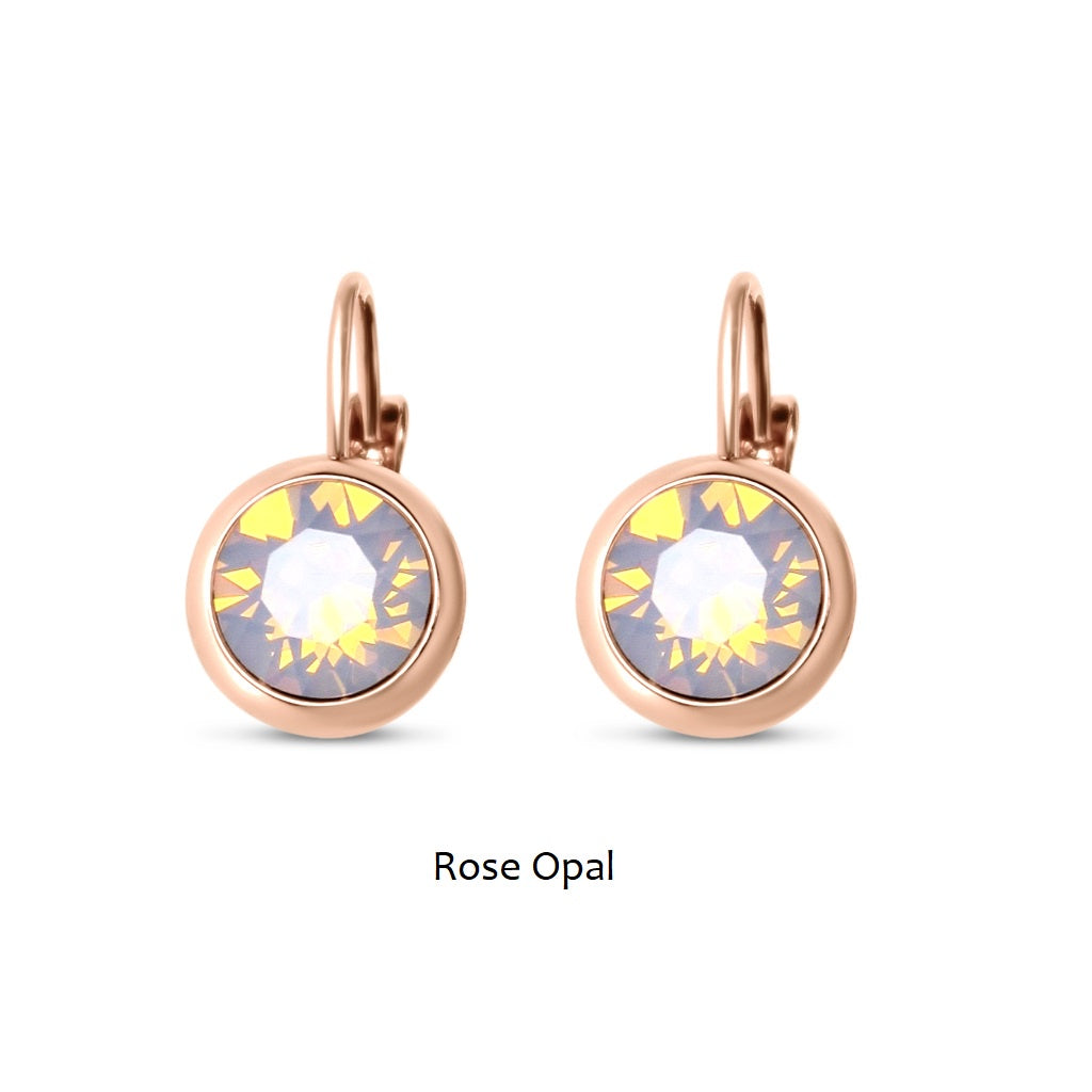 Metal set swarovski stone in medium size pierced french clip earrings in Rose Gold/Rose Opal – Nickel Free