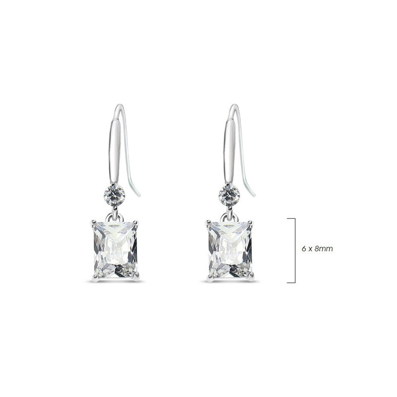 Round with square cubic zirconia drop pierced fish hook earrings in Rhodium/Crystal CZ