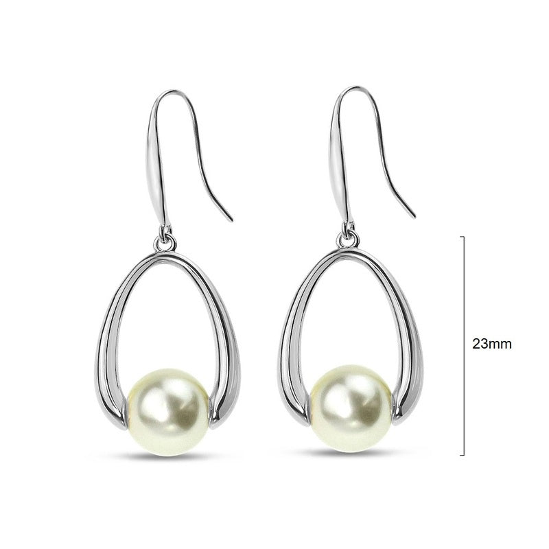 10mm round glass pearl pierced fish polished fish hook earrings in Rhodium/Cream Pearl