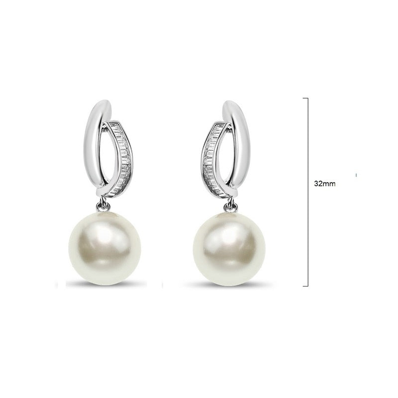 Metal set with CZ stones and dropped with pearl pierced Earrings in rhodium