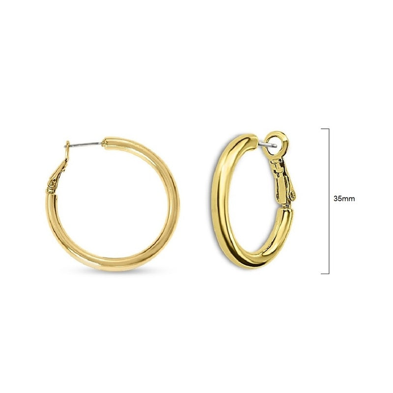 Metal Hoop earrings 35mm diameter clutchless pierced in Gold plated.