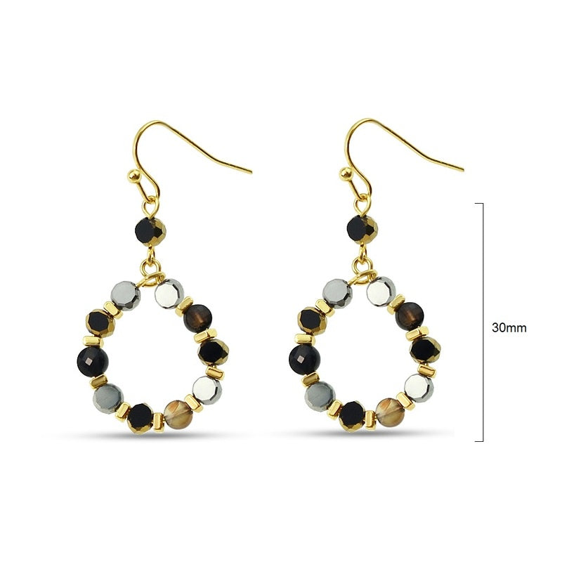 Glass beads on hoop dropped on fish hook earrings in Jet multi/Gold.