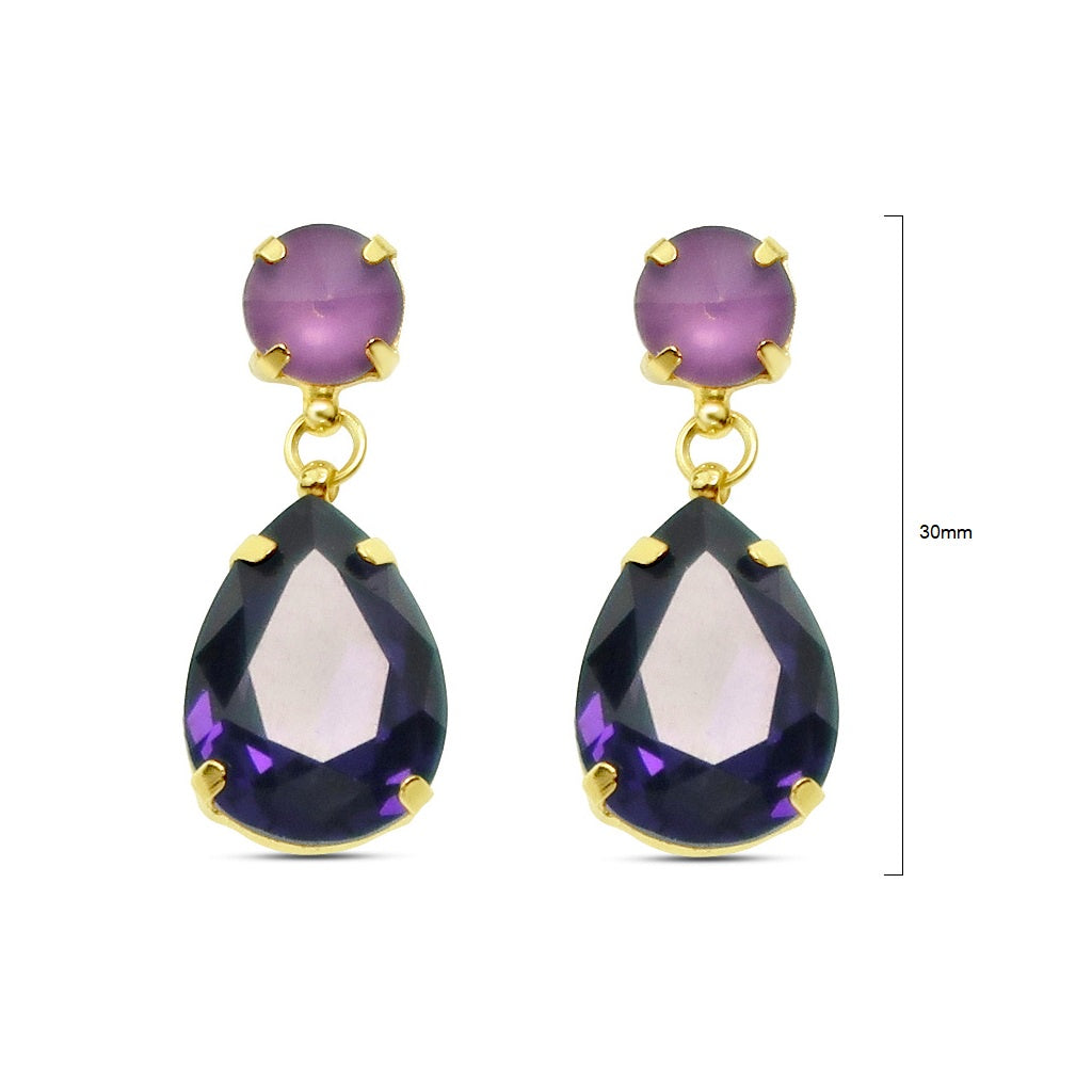 Metal with glass round and tear drop stones pierced drop earrings in Violet/Amethyst Tone