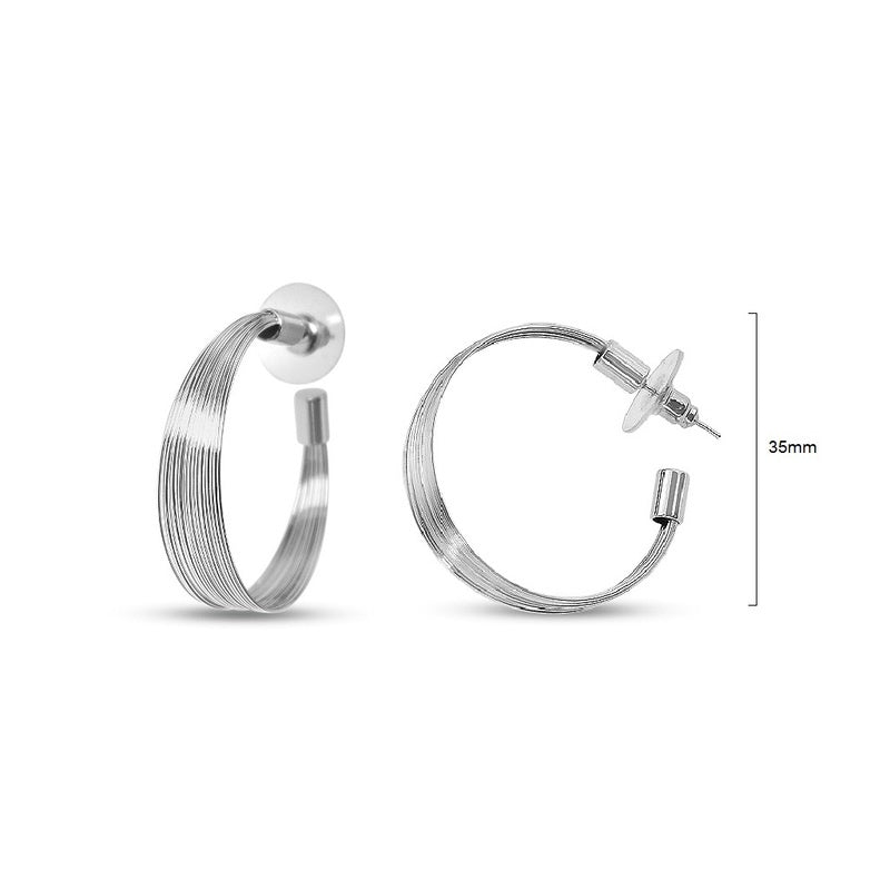 Brass wire tapered Hoop pierced earrings in Silver plated.