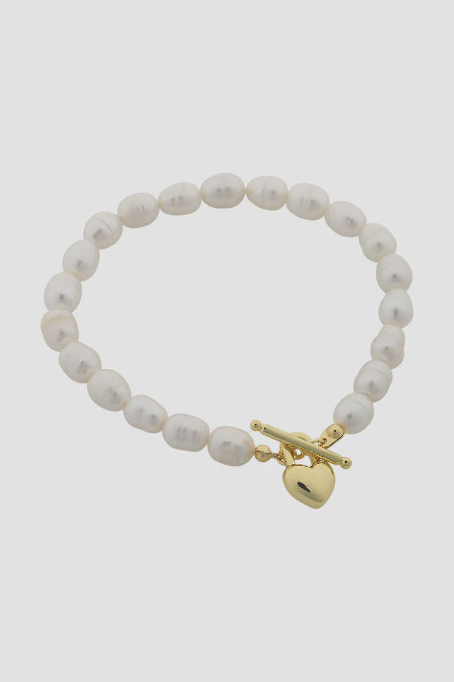 - Fresh water pearl bracelet with vintage inspired gold heart locket clasp