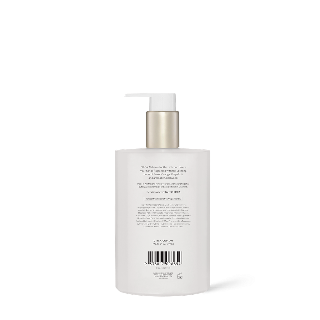 Specially formulated with the uplifting fragrance of Sweet Orange, Grapefruit, and aromatic Cedarwood. Circa Alchemy leaves your hands beautifully fragranced.